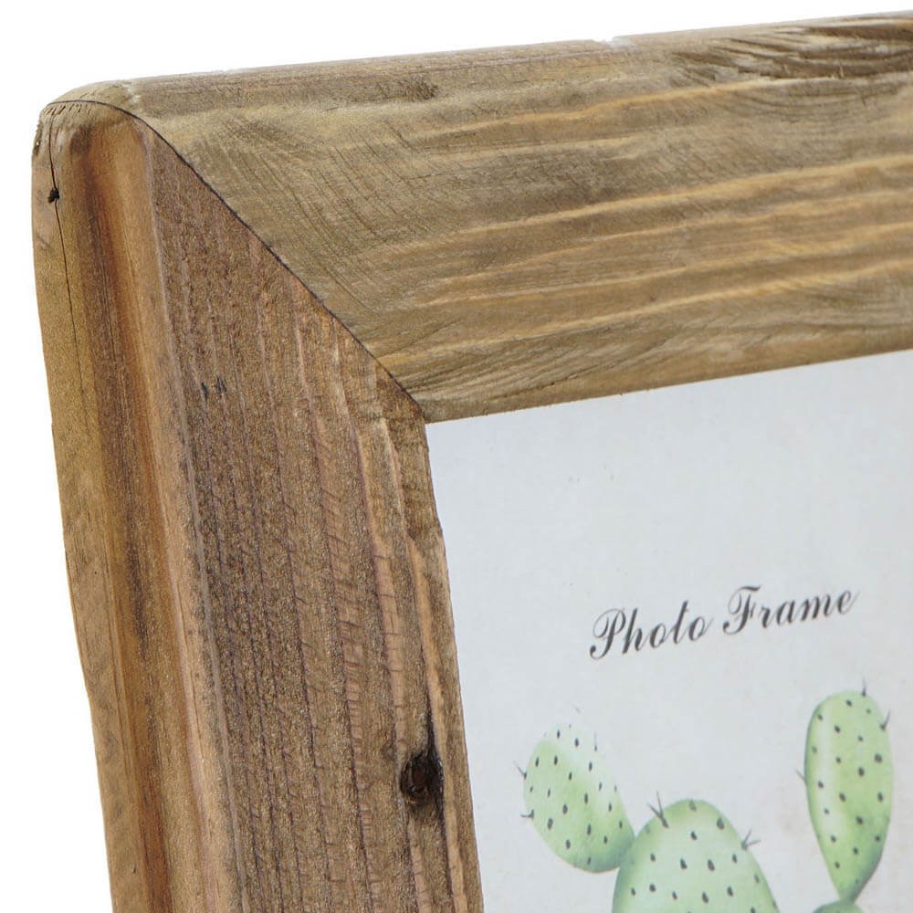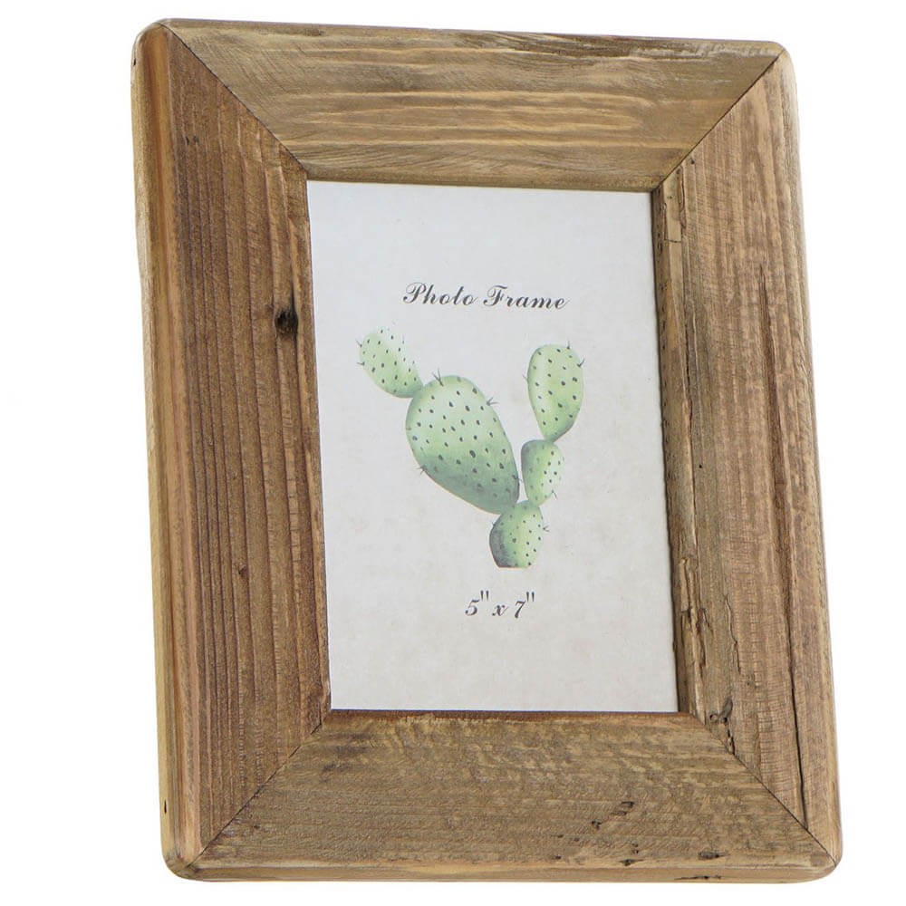 Marco de fotos para fotografía de 10x15 cm fabricado en madera reciclada en color natural con frontal de cristal.
