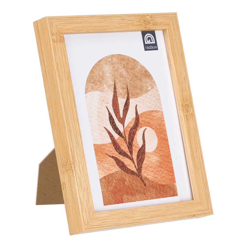 Decora tu hogar con el marco de fotos de 15x20 cm con acabado imitación madera de bambú. Estilo nórdico y minimalista para un toque acogedor.