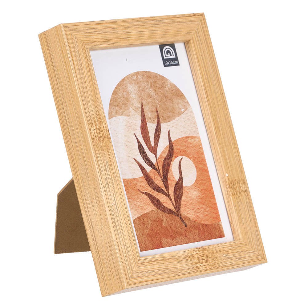 Dale a tu hogar un toque cálido y acogedor con este marco de fotos diseñado para fotografías de 10x15 cm. Su acabado imitación madera de bambú lo convierte en un accesorio decorativo perfecto para personalizar cualquier rincón de tu hogar.