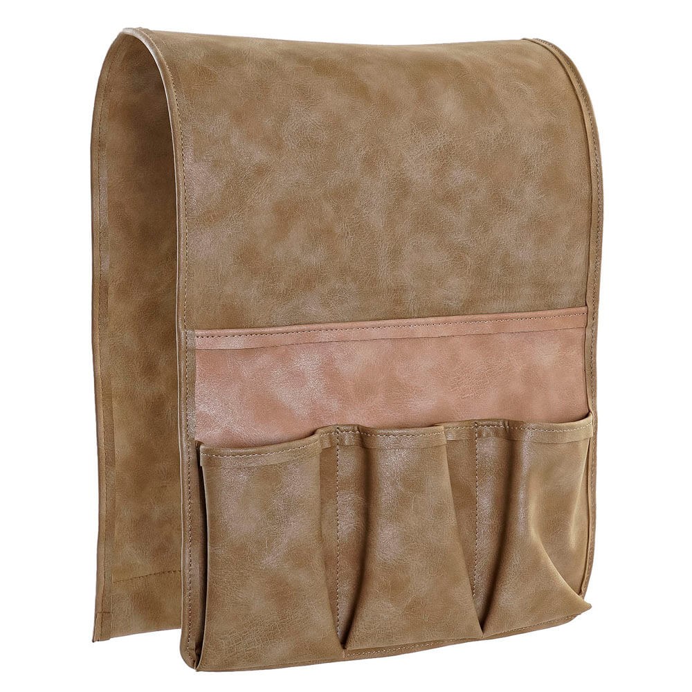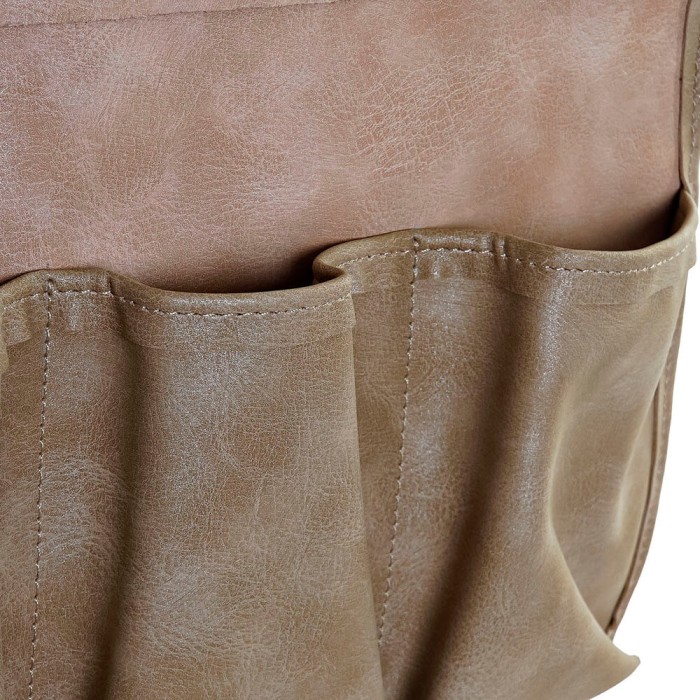 El portamandos esta realizado en polipel de color marrón con un diseño sencillo para que lo coloques en el brazo de tu sofá de estilo tradicional, lleva tres prácticos bolsillos para que metas los diferentes mandos de la casa, televisión, aire acondicionado... y un bolsillo de tamaño superior donde puedes guardar la tablet.