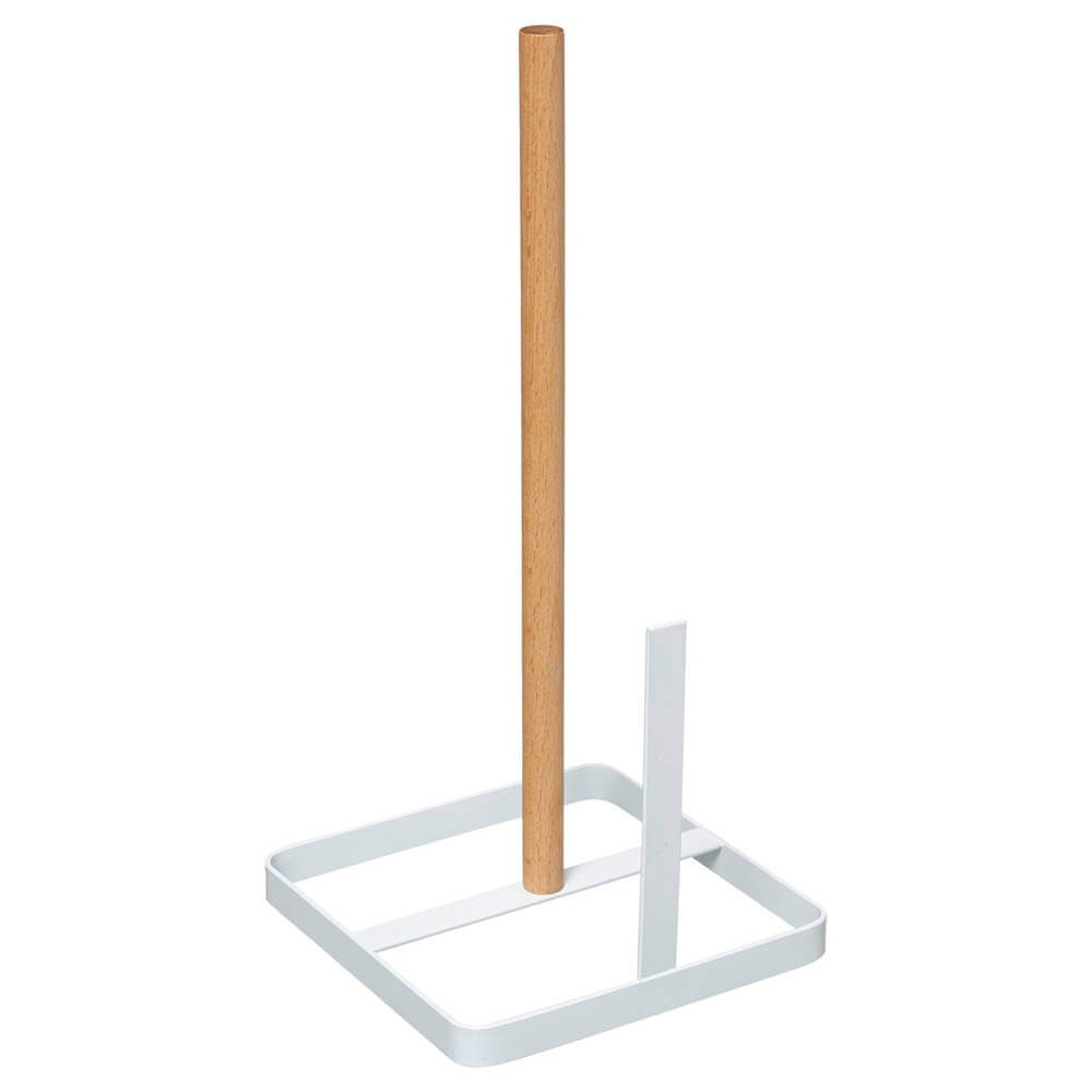 Este portarrollos de pie tiene un diseño minimalista en color blanco, ideal para colocarlo en la encimera y tenerlo siempre a mano.