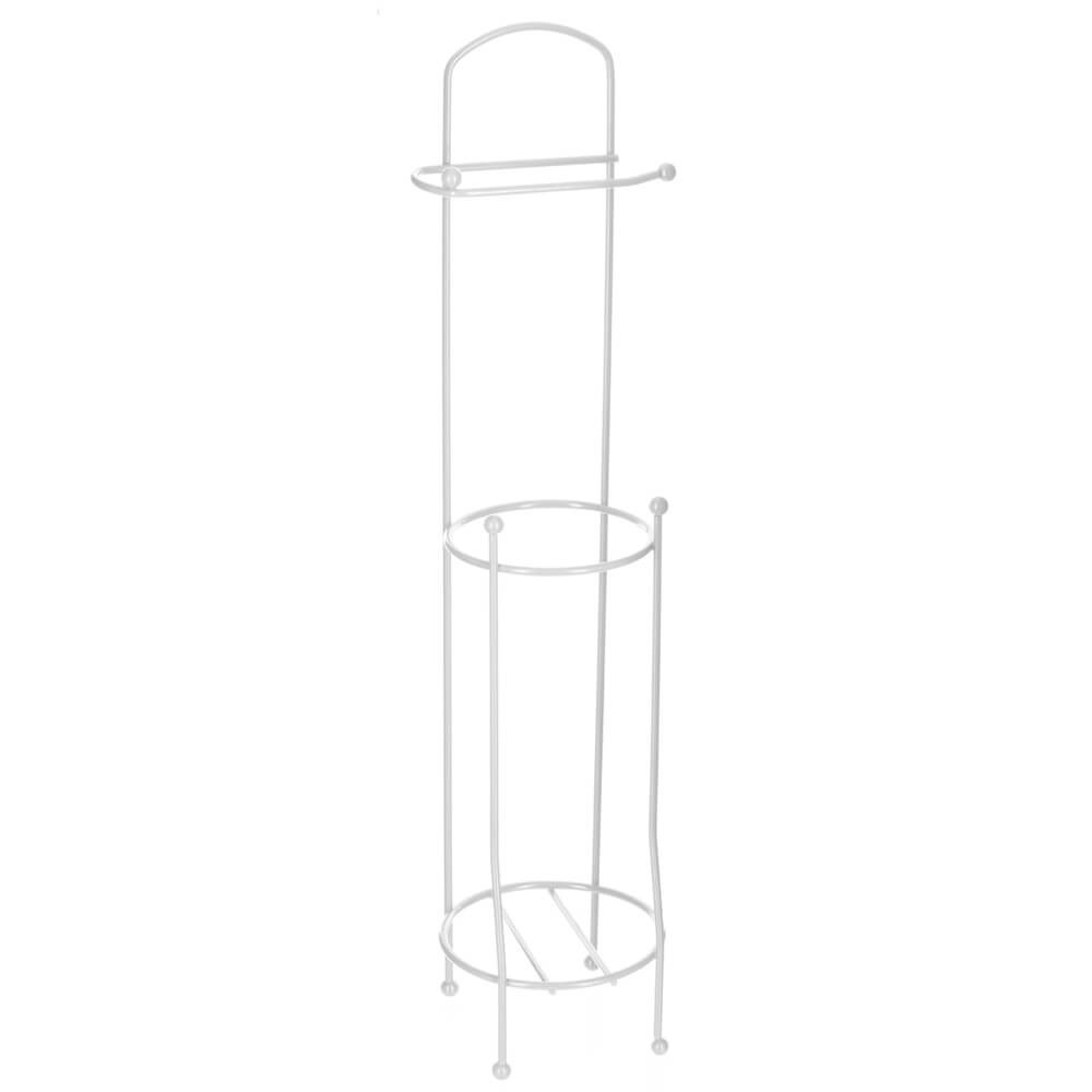 Portarrollo de pie con contenedor para rollos de papel higiénico fabricado en acero de color blanco, la cesta permite almacenar varios rollos de papel para garantizar que nunca falte. Cuenta con cuatro patas para levantarlo del suelo y evitar que los rollos entren en contacto con el suelo.