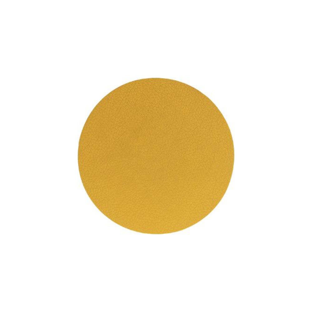 Set compuesto por 6 Posavasos redondos de estilo moderno y elegante fabricados en poliuretano de color mostaza, perfectos para proteger las mesas de arañazos.