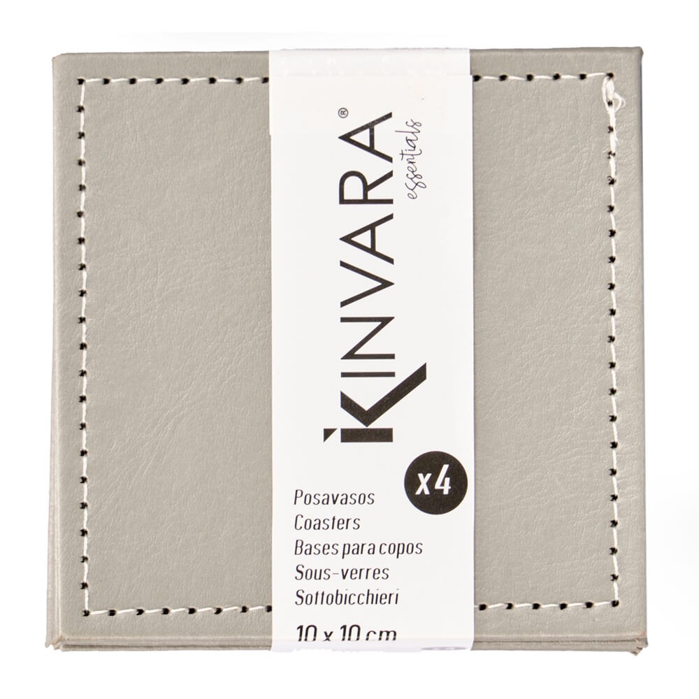 Set de 4 posavasos cuadrados de polipiel en colores marrón, negro o gris. Diseño moderno y elegante para proteger tus mesas de manchas y arañazos.