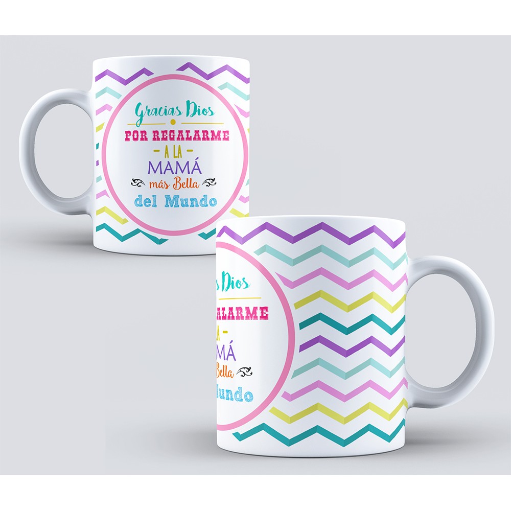 En el centro de la taza, encontrarás la emotiva frase "Gracias Dios por regalarme a la mamá más bella del mundo". Esas palabras capturan la gratitud y el amor que sientes por tu madre, y seguro que la emocionarán cada vez que disfrute de su bebida favorita en esta taza especial.