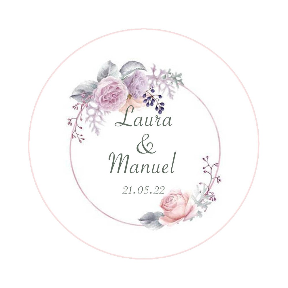 Esta chapa con imán tiene un bonito y elegante diseño floral en tonos malva, puedes personalizar los nombres y la fecha del enlace para crear un bonito detalle para tu boda, será todo un éxito.