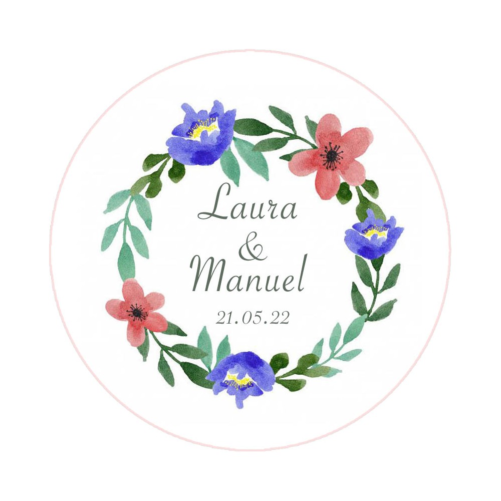Esta chapa con imán esta decorada con una sencilla corona de hojas verdes con 5 flores, puedes personalizar los nombres y la fecha del enlace para crear un bonito detalle para tu boda, será todo un éxito.