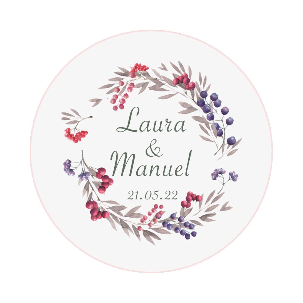 Esta chapa con imán esta decorada con un bonito diseño de bayas y hojas, puedes personalizar los nombres y la fecha del enlace para crear un bonito detalle para tu boda, será todo un éxito.