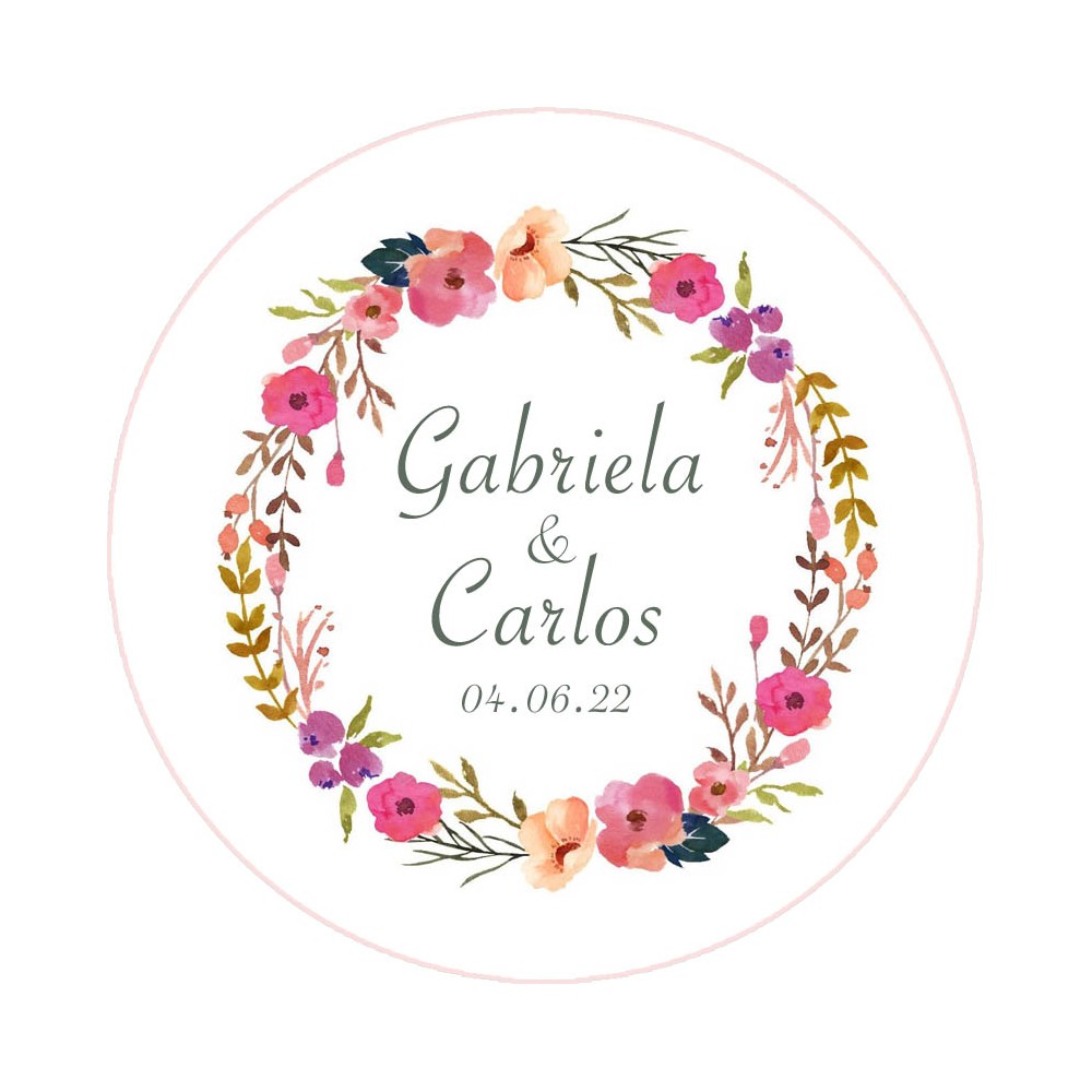 Esta chapa con imán esta decorada con una bonita corona de flores, puedes personalizar los nombres y la fecha del enlace para crear un bonito detalle para tu boda, será todo un éxito.