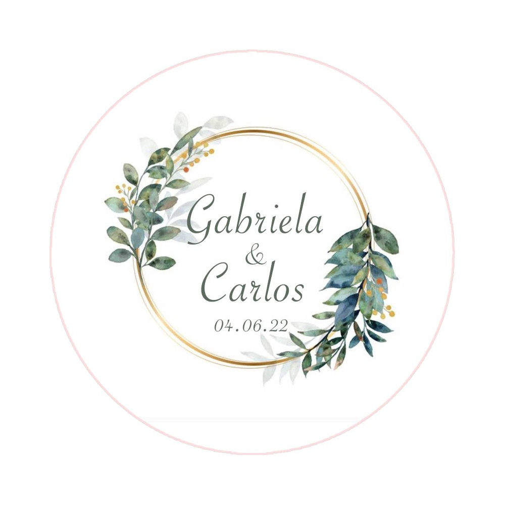 Esta chapa con imán de estilo sofisticado lleva una bonita corona decorada con hojas en tonos verdes, puedes personalizar los nombres y la fecha del enlace para crear un bonito detalle para tu boda, será todo un éxito.