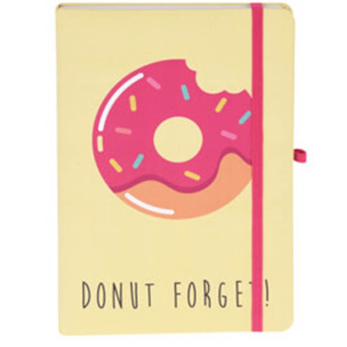 Cuaderno de notas tamaño A5 con cierre de tira elástica y tapas duras decoradas, contiene hojas de papel perfectas para apuntar, dibujar y animarte a llevar a cabo todos tus sueños.