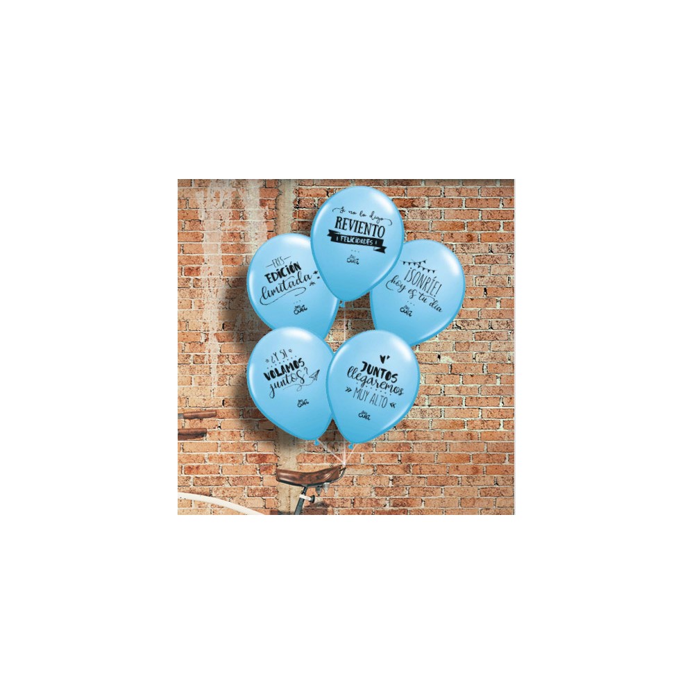 10 GLOBOS AZULES DECORADOS CON FRASES, IDEALES PARA FIESTAS.