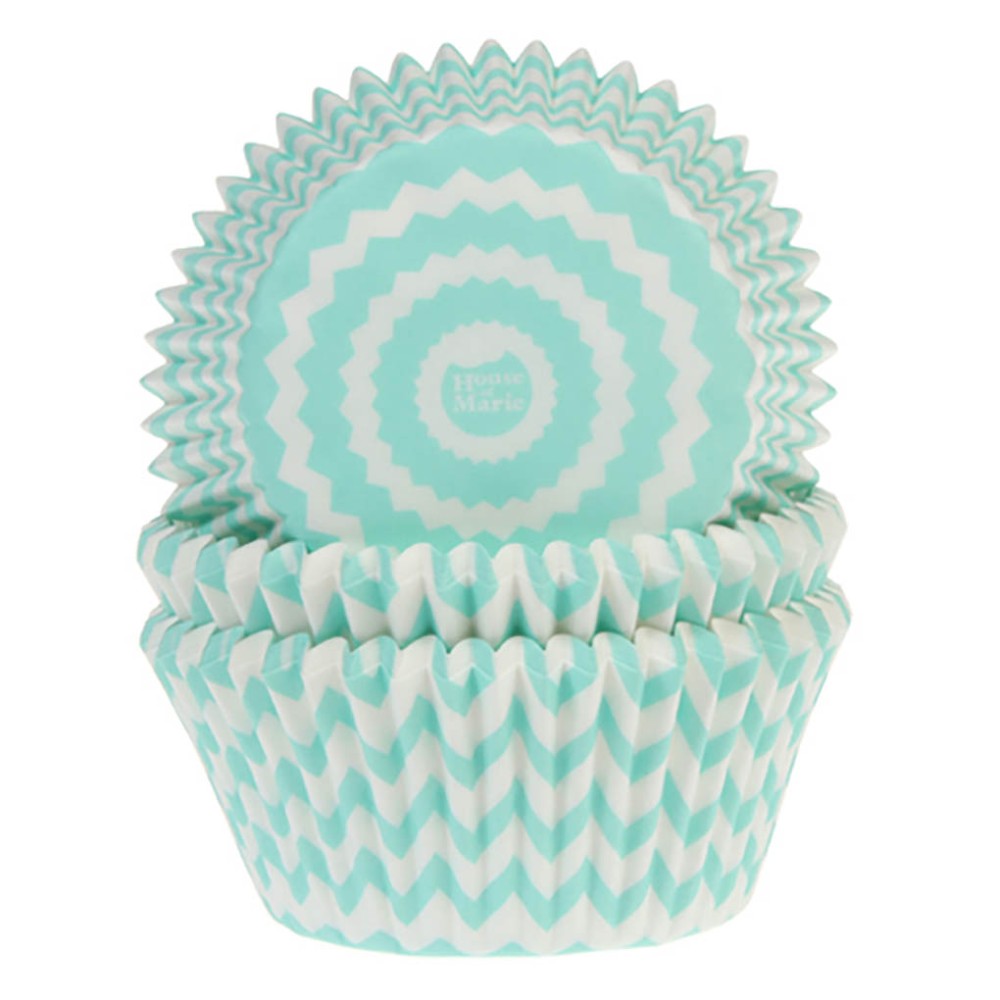 Cápsulas para hornear cupcakes de House of Marie con un encantador diseño zigzag blanco y verde menta, ideales para fiestas de cumpleaños, bautizos, comuniones, etc. Fabricadas con papel de alta calidad. Contenido: 50 cápsulas, dimensiones: 5 cm de diámetro.