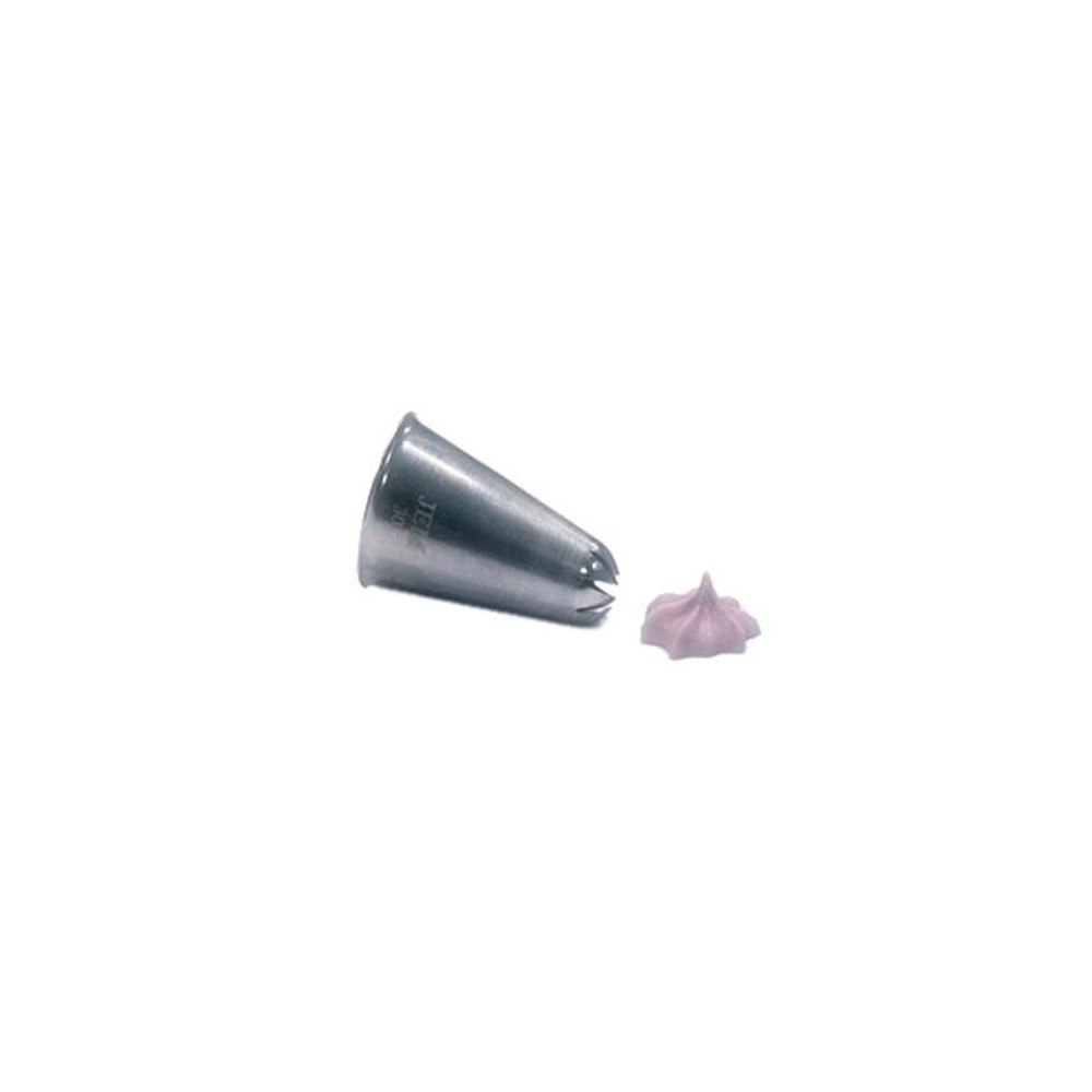 Boquilla de estrella cerrada fabricada en acero inoxidable de Jem. Con la boquilla #30 podrás elaborar conchas, rosetas y decoraciones de muchos tipos.