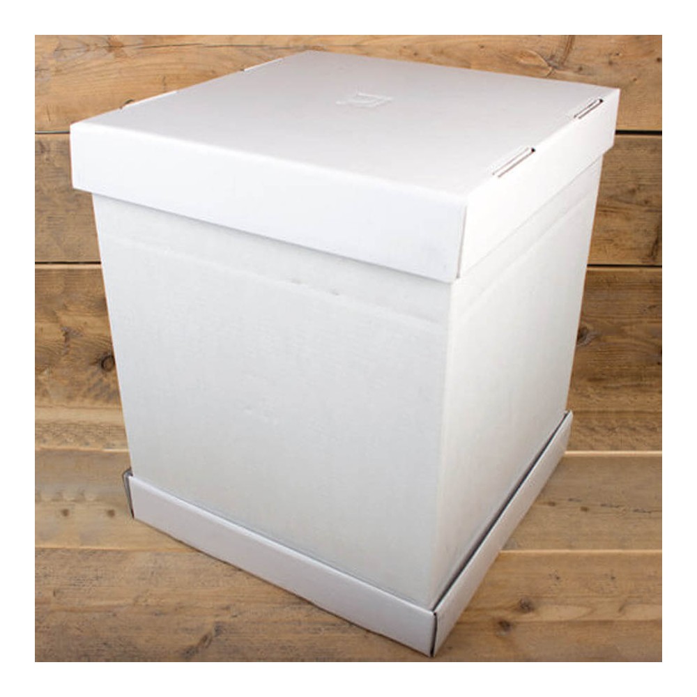 Caja para tarta de gran tamaño de la marca FunCakes, resistente y fácil de montar. La caja para transportar tartas esta divida en dos partes, base y tapa, lo que facilita colocar pasteles de gran tamaño, como por ejemplo, una tarta de boda.
