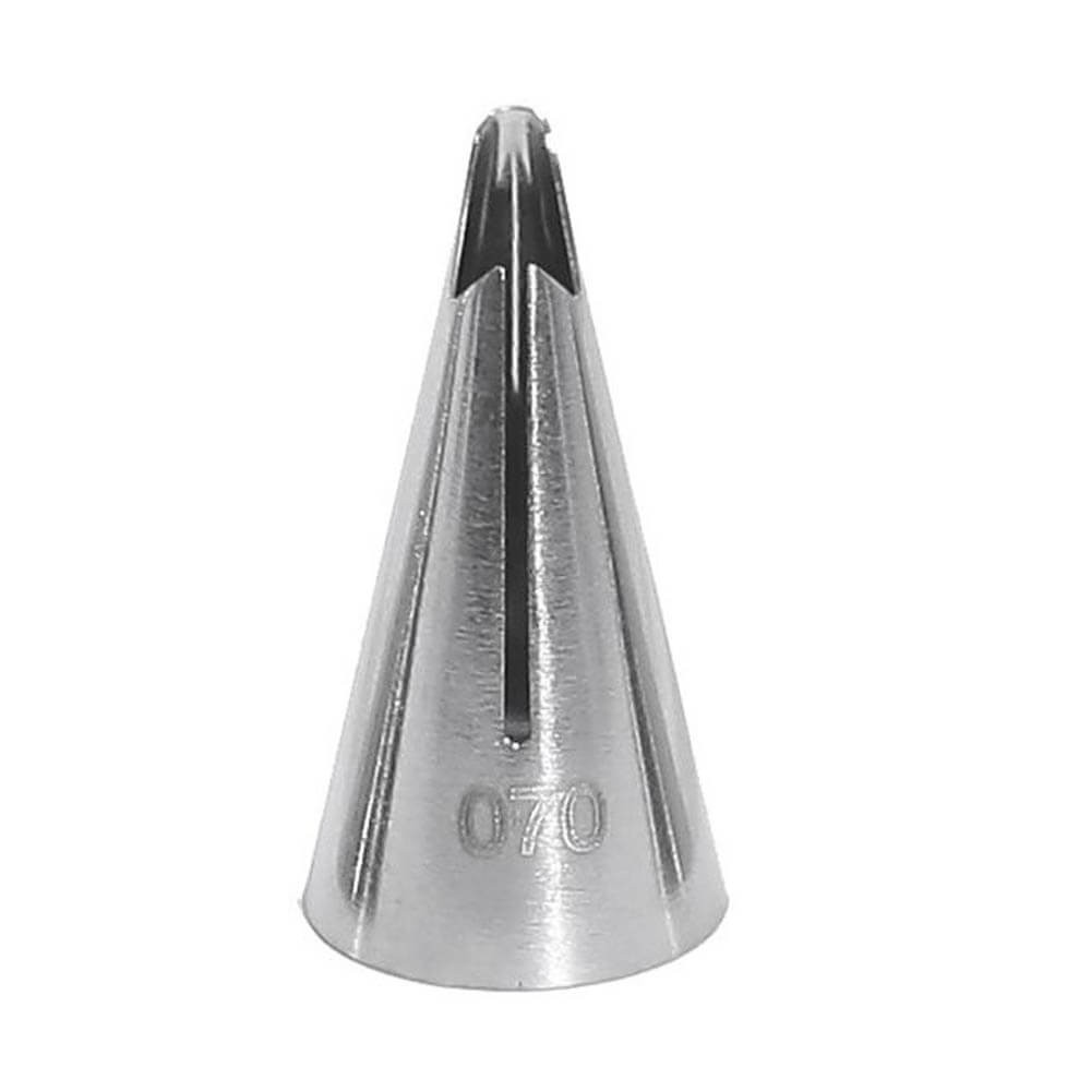 Boquilla número 70 realizada en acero inoxidable, muy útil para realizar trabajos de repostería y pastelería.