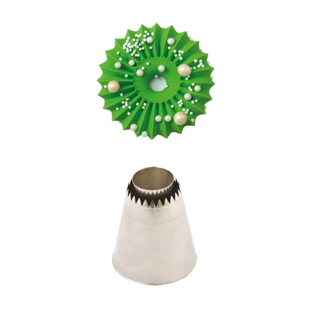 Boquilla realizada en acero inoxidable de alta calidad, sin puntos de soldadura, resistente y limpia, su forma es idónea para realizar el típico dulce francés "Religiosas" elaborado con masa choux.