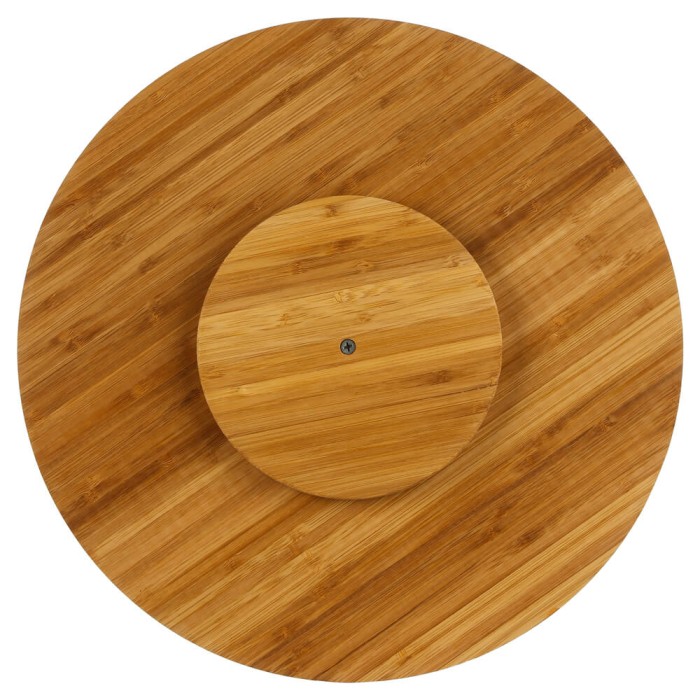 Bandeja giratoria realizada en bambú resistente con plato de 35 cm de diámetro, perfecta para preparar tablas de quesos y embutidos, pero también para servir todo tipo de aperitivos en la mesa.