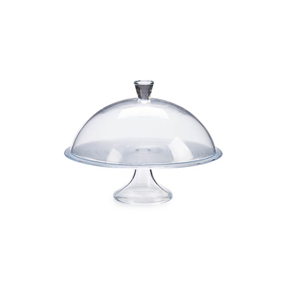 El stand de cristal cuenta con una tapa tipo campana con tirador en forma de bola para un agarre cómodo y seguro, muy práctica para mantener los pasteles frescos.