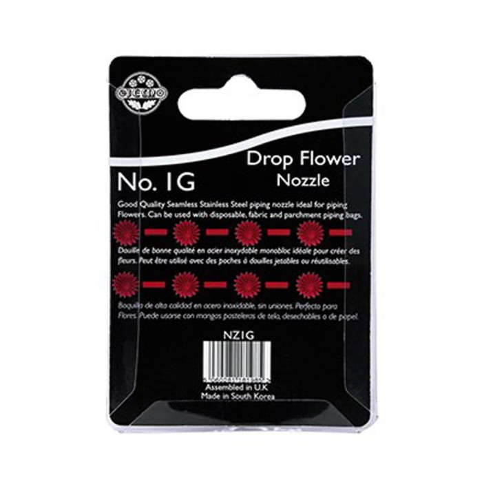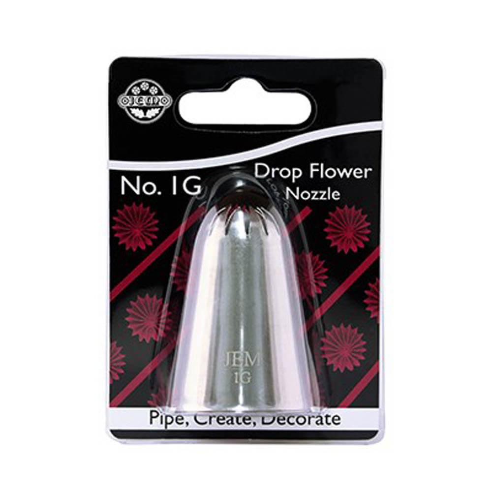 Boquilla #1G de la marca Jem realizada en acero inoxidable de una sola pieza sin puntos de soldadura, diseño flor de gota, ideal para la realización de flores grandes para decorar cupcakes , tartas y pasteles.