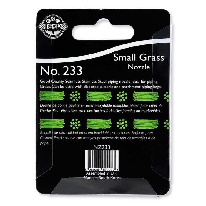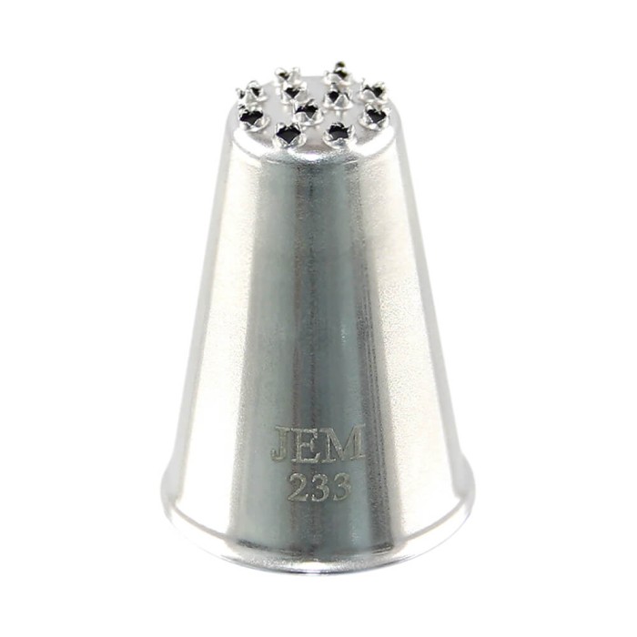 Boquilla #233 de la marca Jem realizada en acero inoxidable de una sola pieza sin puntos de soldadura, diseño con múltiples aberturas para realizar diseños de hierba o de pelo.