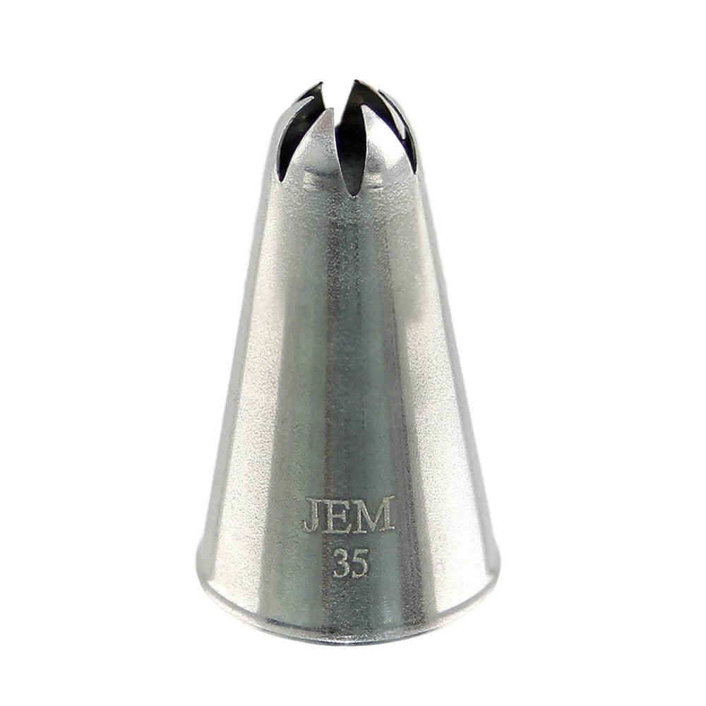 Boquilla #35 de JEM en acero inoxidable, perfecta para realizar técnicas de flores colgantes, conchas, rosetas y estrellas acanaladas.