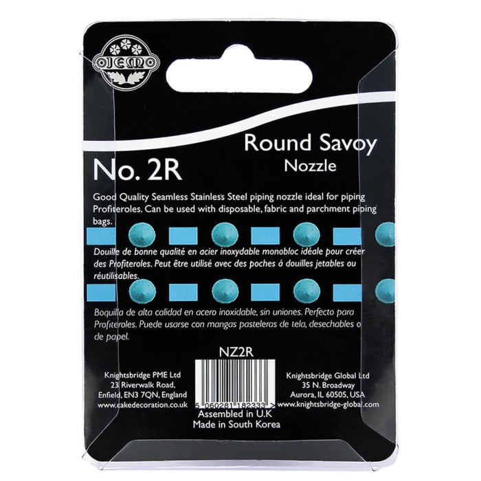 Boquilla #2R de la marca Jem de alta calidad realizada en acero inoxidable de una sola pieza sin puntos de soldadura, diseño redondo y plano, ideal para ejecutar cuentas, puntos y líneas. También se puede usar con crema, puré de patata y pasta choux.