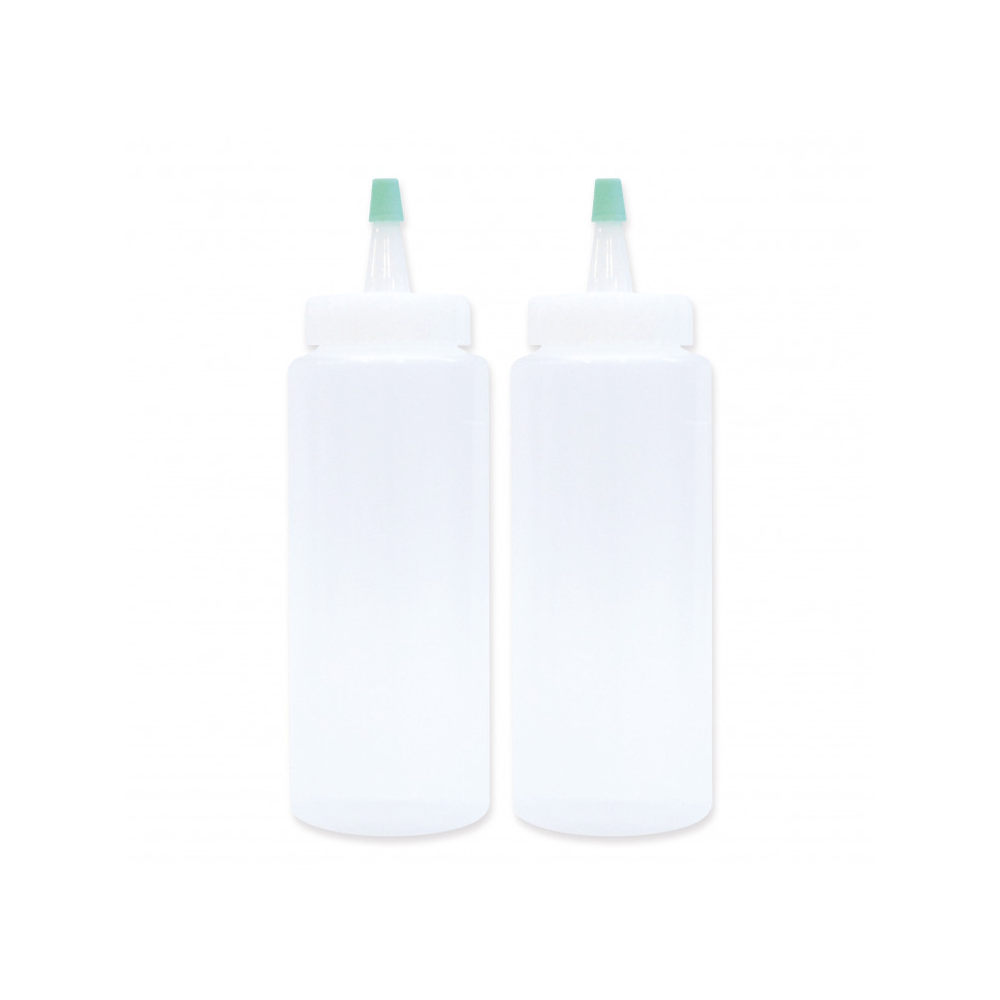 Set de 2 biberones de cocina realizados en plástico PE apto para entrar en contacto con alimentos para que decores cómodamente galletas con glasa. También los puedes usar para contener salsas y decorar con exactitud platos y postres aportando un acabado profesional.