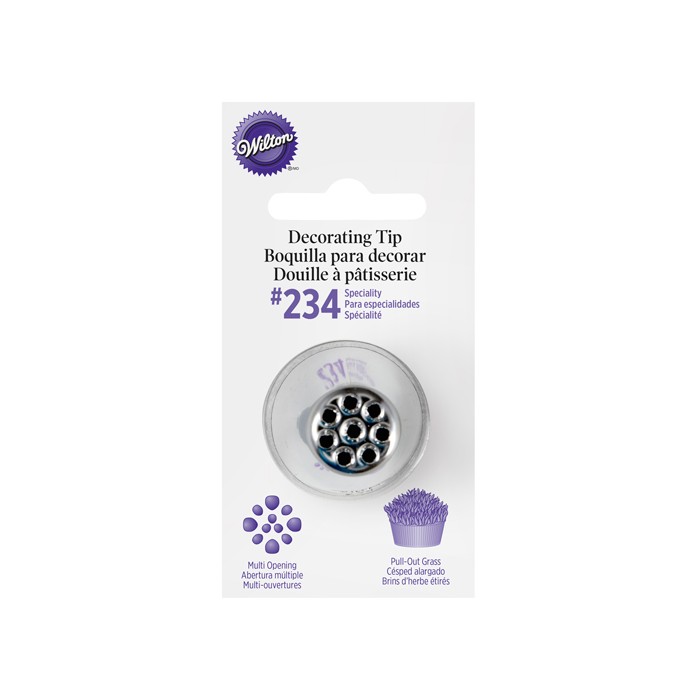 Crea líneas más largas para pelo, piel y césped con la Boquilla de Decoración Multiapertura de Wilton. Esta boquilla es una variante entre las #2010 y la #233 de Wilton.