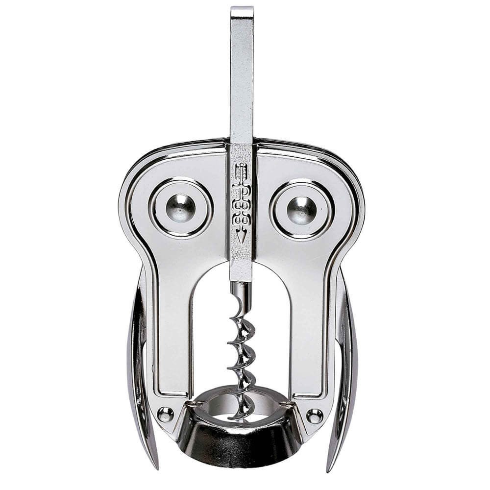 Sacacorchos de palanca modelo Búho de la marca BOJ en color cromado.