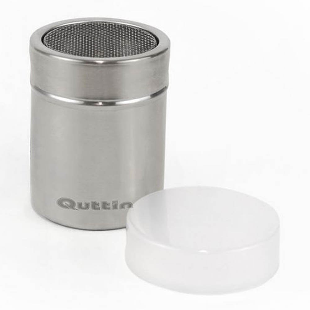 Bote tamizador realizado en acero inoxidable con malla fina para espolvorear, azúcar, canela, harina, cacao en polvo, etc. Posee tapa de PVC para conservar el contenido de manera higiénica.