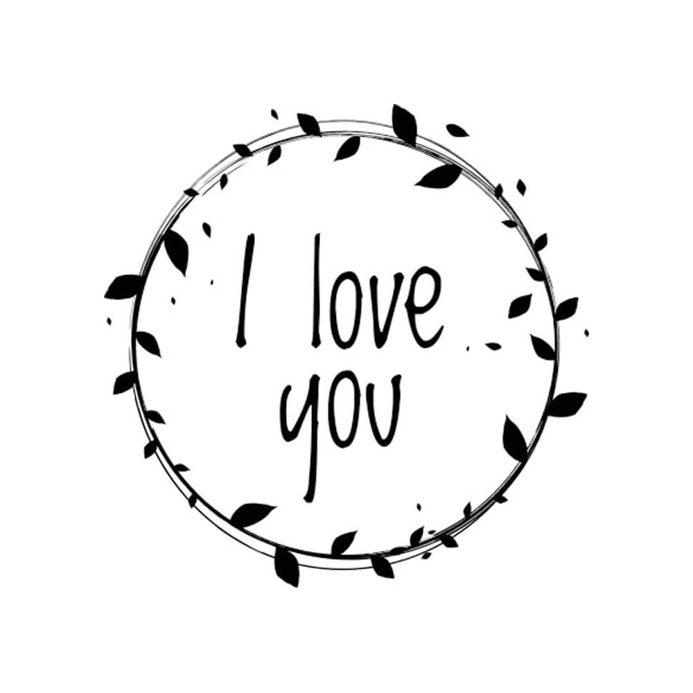 Sello de caucho con grabado profundo modelo "I Love You", montado sobre bloque de madera cilíndrico de unos 3,3 cm de diámetro, ideal para realizar todo tipo de trabajos artesanales y personalizados. Este sello es perfecto para crear trabajos de embossing, estampación, decoración de regalos y todo tipo de proyectos de scrapbooking, podrás ilustrar tarjetas, etiquetas, libretas, paquetes, álbumes de recorte, etc. El motivo representa varias circunferencias sobrepuestas con hojas de laurel y en el interior la inscripción "I Love You".