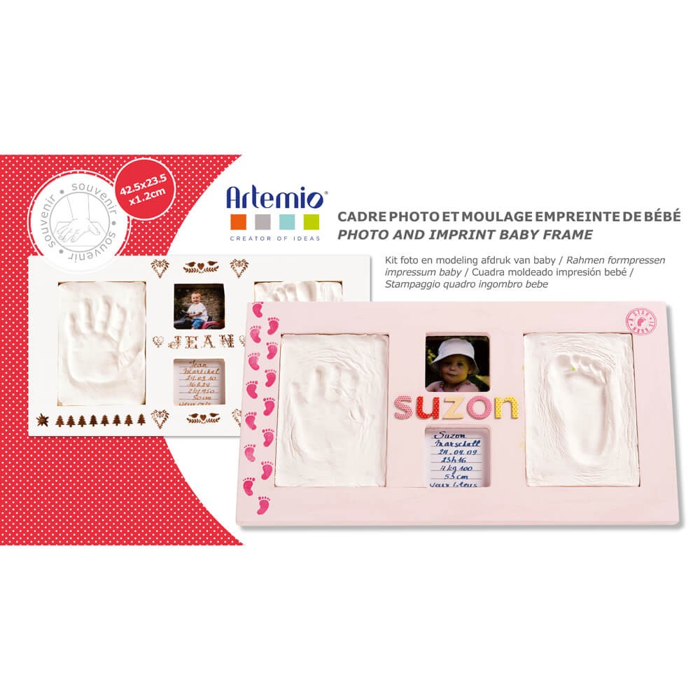 Set para marcar la mano y pie de tu bebe. Incluye arcilla suave y fácil de manejar y un marco de fotos múltiple.