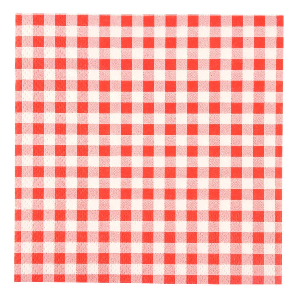 Paquete con 20 servilletas decoradas de papel diseño vichy rojo en tamaño coctel.