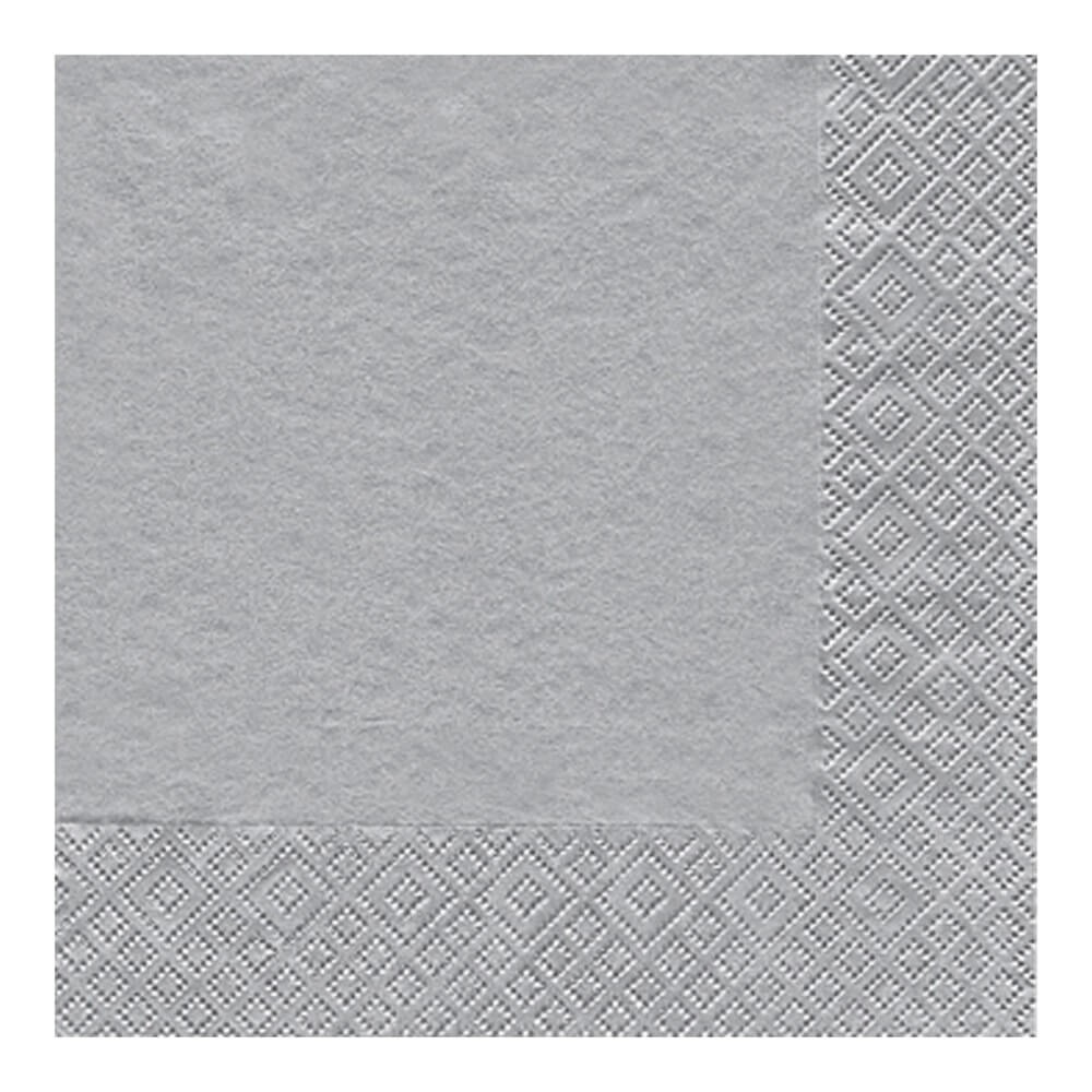 Servilletas de papel en color plata de tamaño coctel, perfectas como alternativa a las servilletas de tela para usar en aperitivos, cocteles, cumpleaños, eventos, etc.