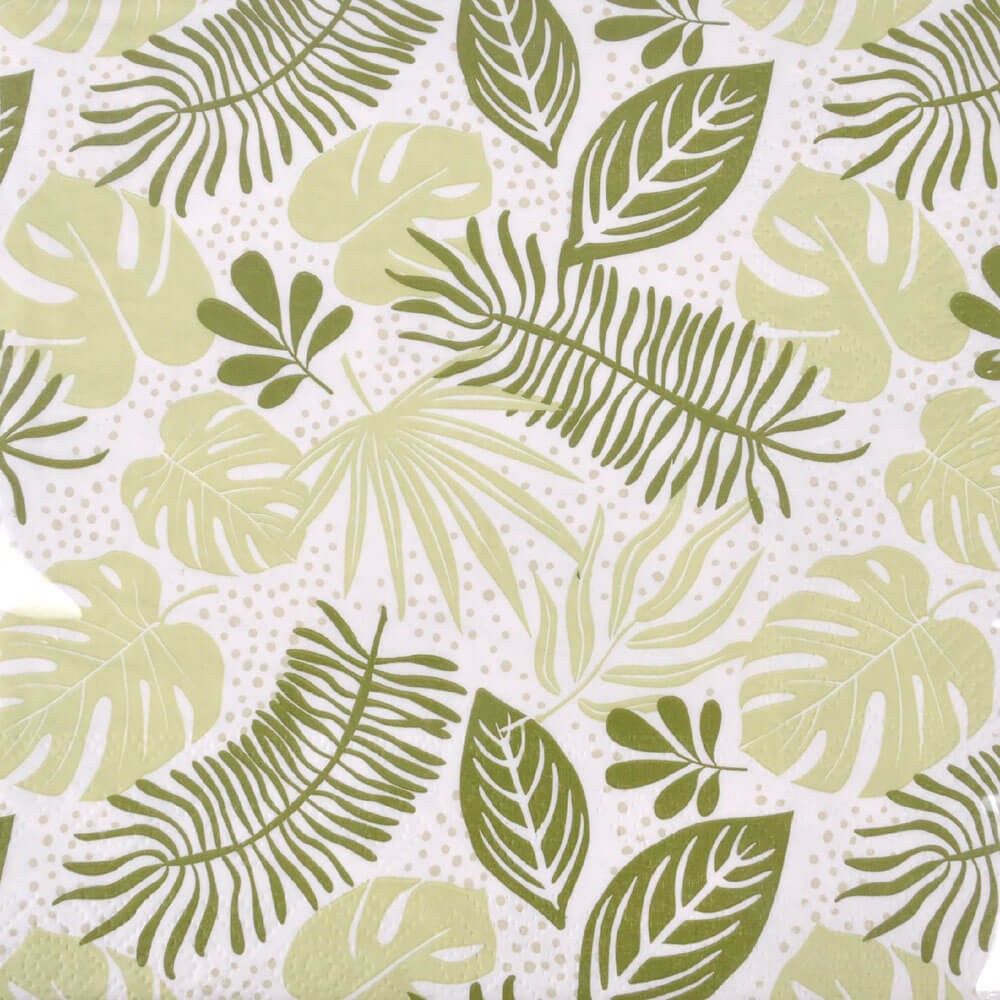 Servilletas de papel decoradas con diferentes tipos de hojas en tonos verdes, perfectas como alternativa a las servilletas de tela para comidas y cenas informales.