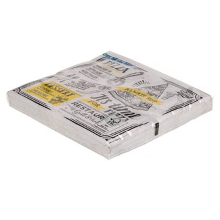 Servilletas de papel diseño Tasty con una original impresión en negro y amarillo de pizza y postres, perfectas como alternativa a las servilletas de tela para comidas y cenas informales.