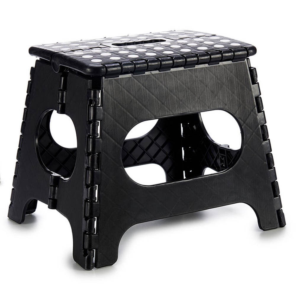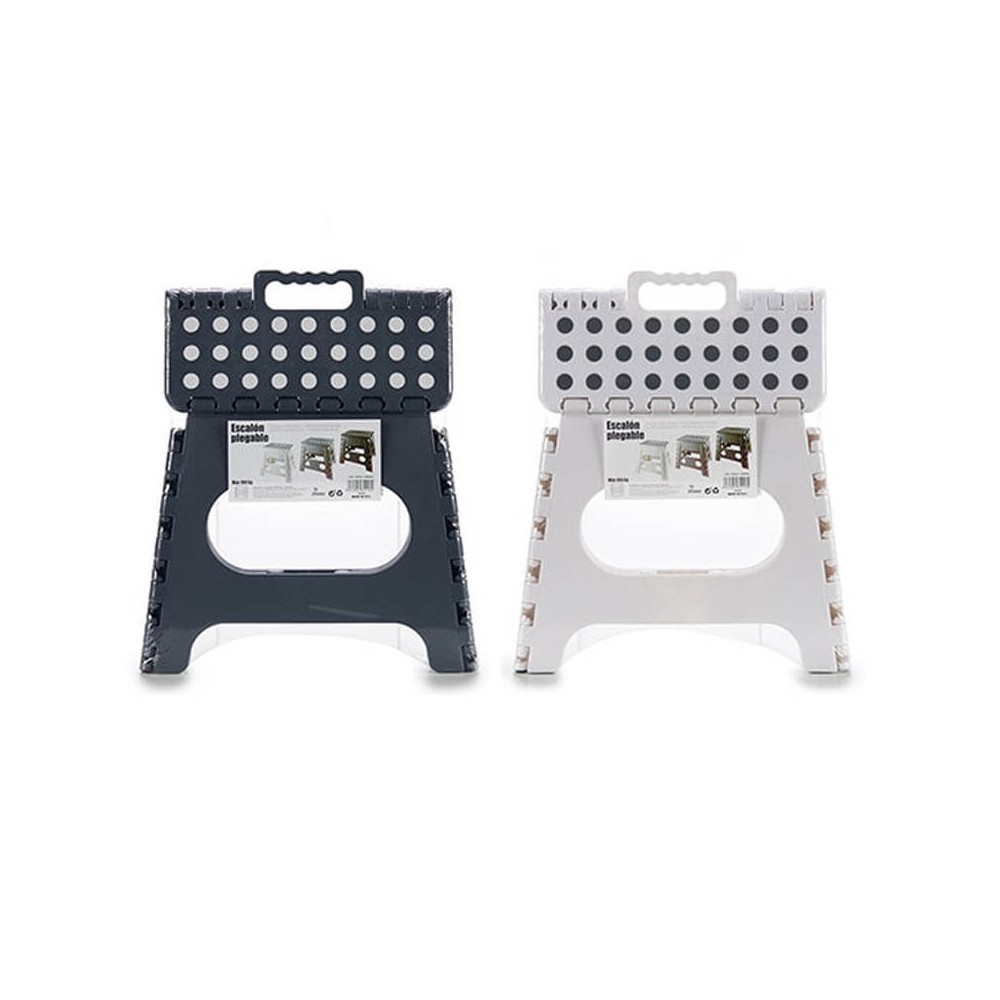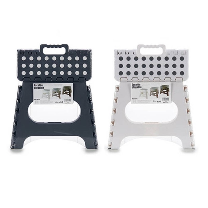 Taburete plegable tipo escalón realizado en plástico de color, negro, gris o blanco.