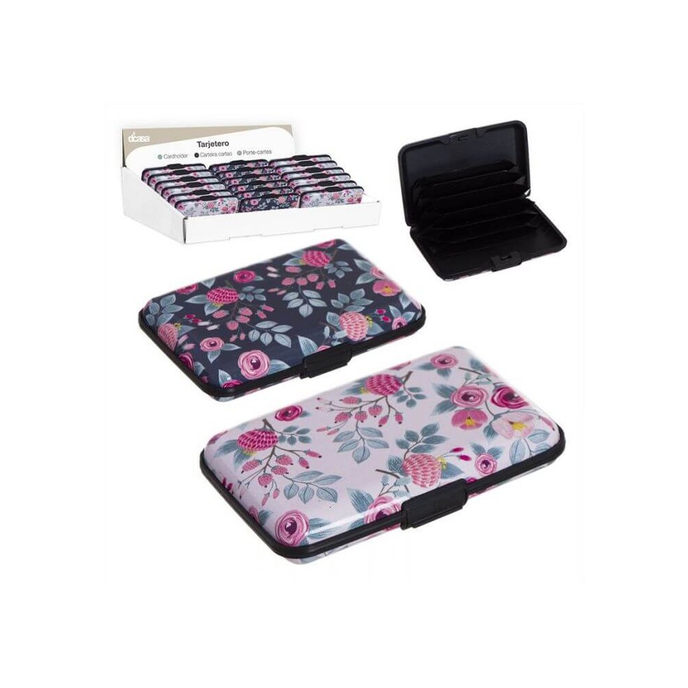 Tarjetero de mujer modelo rose con las tapas realizadas en plástico rígido decorado con flores, disponible en color rosa o negro. El tarjetero lleva internamente divisiones para organizar las tarjetas de crédito y demás tarjetas.