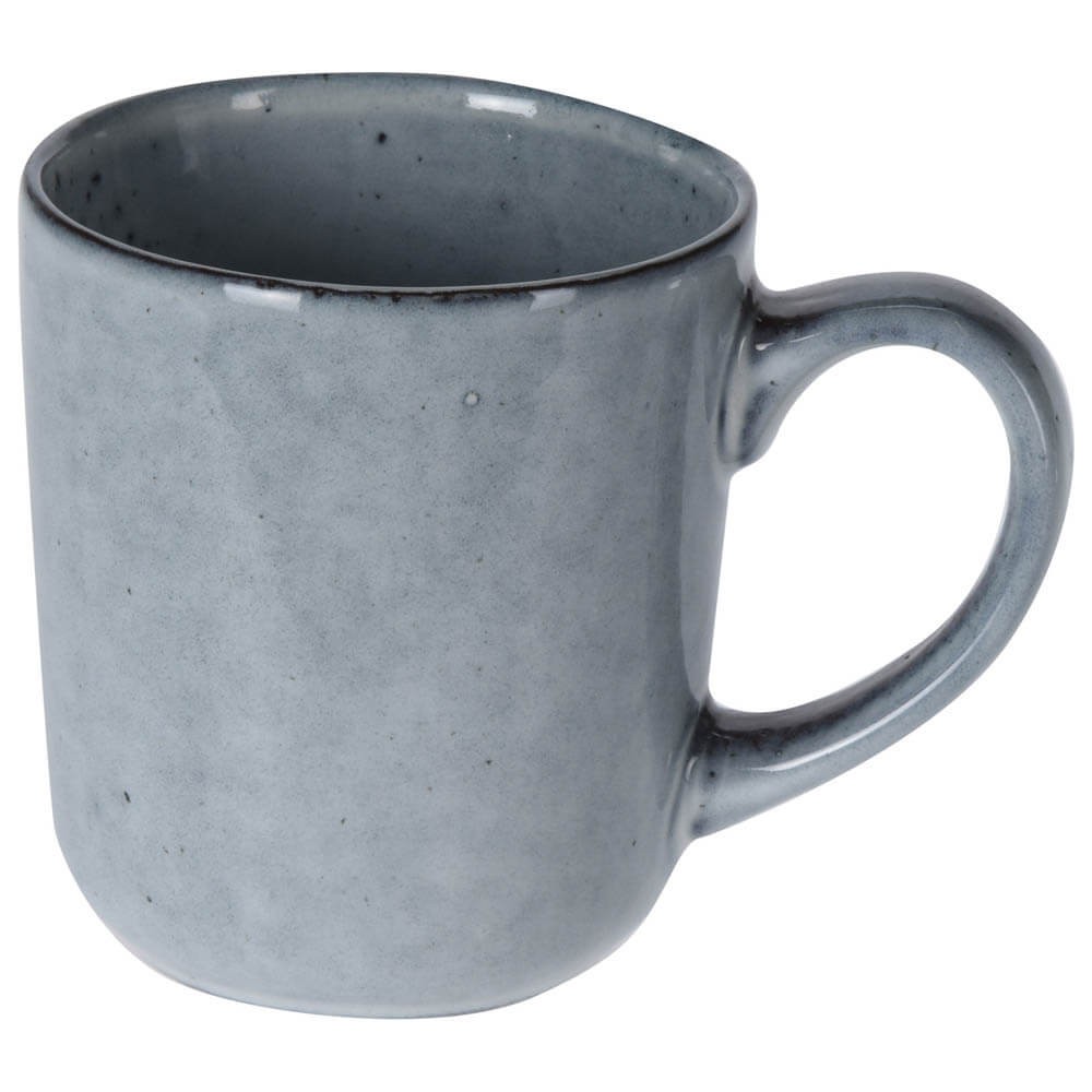 Taza de cerámica esmaltada en color azul con 320 ml de capacidad, diseño en tendencia de estilo rústico con pequeñas irregularidades que la convierten en una pieza única y especial, muy cómoda de sostener y agradable al tacto, ideal como pieza suelta o para configurar una vajilla.