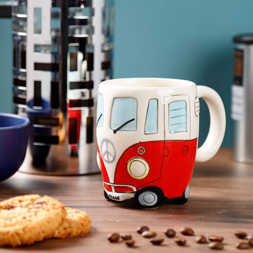 Si eres de los que le gusta el diseño retro de la caravana Volkswagen te encantara desayunar en esta taza 3D realizada en cerámica dolomita con un original diseño en color rojo, verde, azul o naranja, perfecta para que disfrutes cada mañana de tu bebida favorita, café, té... en la caravana más hippie.