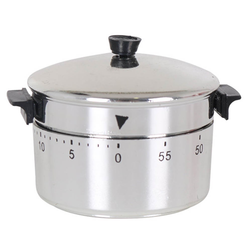 Reloj de cocina en forma de olla con temporizador de hasta 60 min, mecanismo con mando giratorio fácil de manejar. Este temporizador de cocina es perfecto para marcar el tiempo de cocción, te ayudara a controlar los tiempos y te recordara con un sonido que es la hora de apagar y retirar la olla, sartén, etc. Es un gran ayudante en la cocina para que las recetas salgan perfectas.