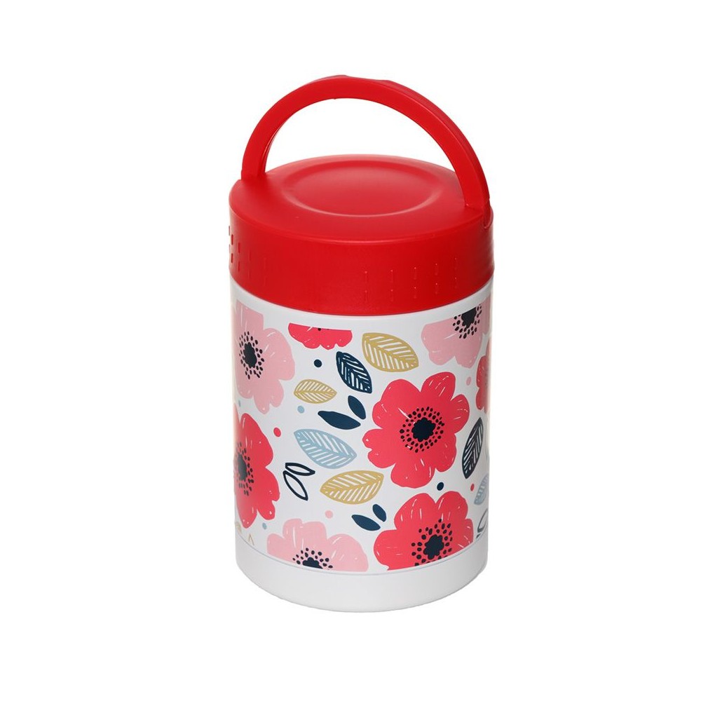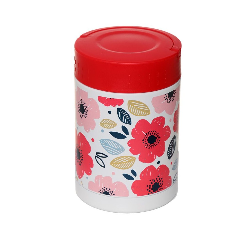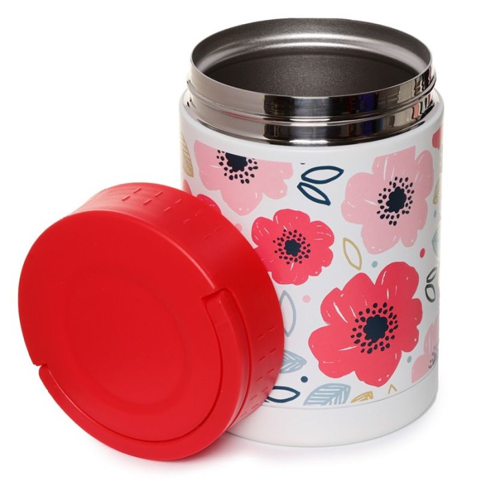 Termo para sólidos modelo Amapolas fabricado en acero inoxidable con doble pared para garantizar que la temperatura de la comida se mantenga durante más tiempo, mantiene los alimentos fríos hasta 8 horas y calientes hasta 6 horas.