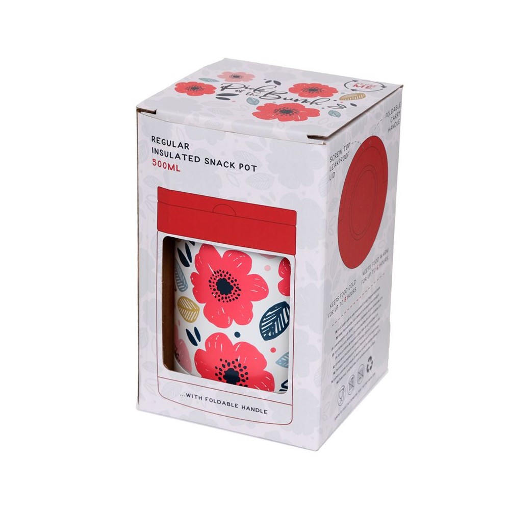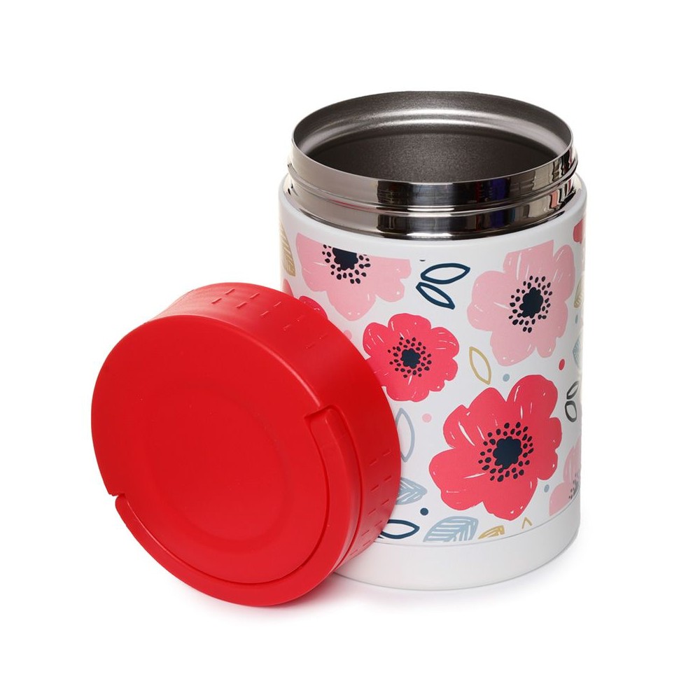 Termo para comida portátil fabricado en Acero Inoxidable, diseño Amapolas con 500ml de capacidad.
