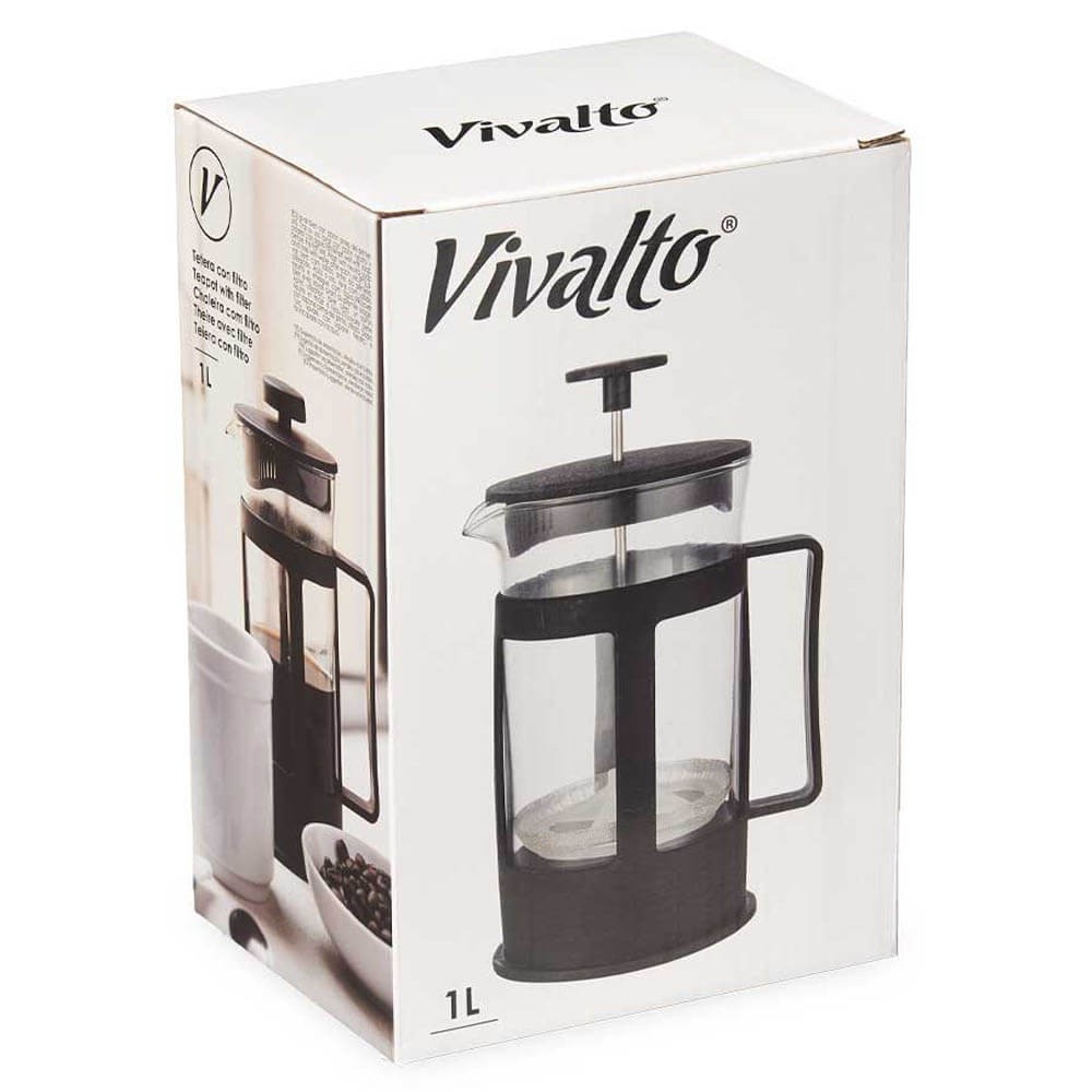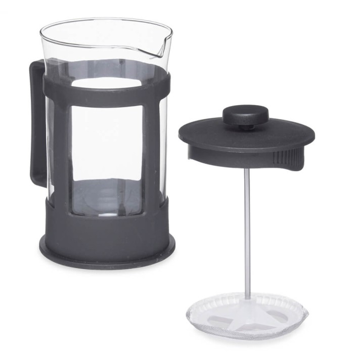 Cafetera de émbolo de 1 litro de capacidad en vidrio y plástico PP. Con filtro de acero inoxidable, perfecta para preparar café o té con un sabor más fuerte y sabroso.