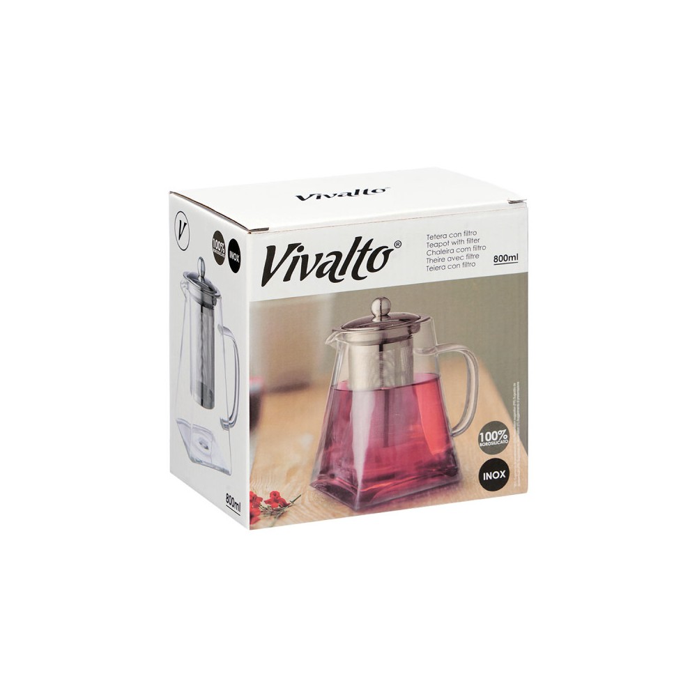 TETERA VIDRIO Y ACERO 800ML /12