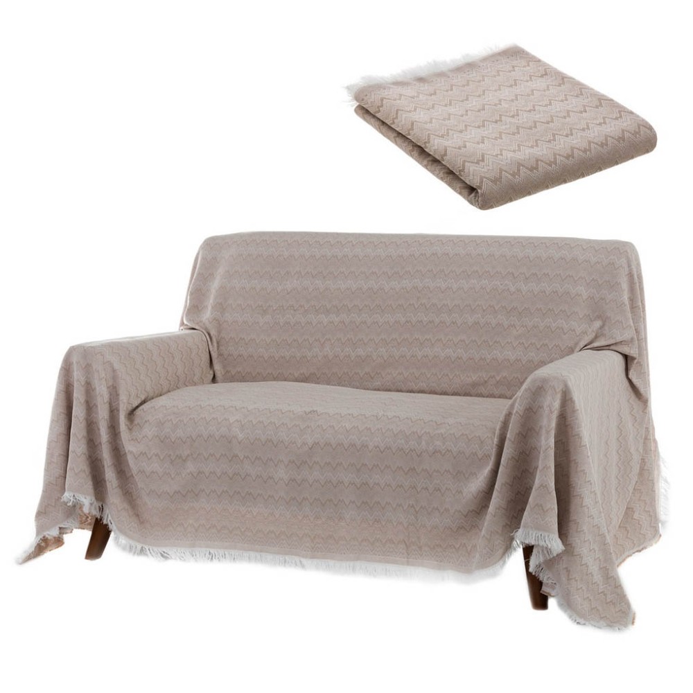 Colcha confeccionada en 50% algodón y 50% poliéster de alta calidad en color beige. Podrás usar la colcha para cubrir un sillón o sofá y renovarlo fácilmente, para colocarla sobre la cama como una colcha, para el coche, la playa... tiene infinidad de usos.