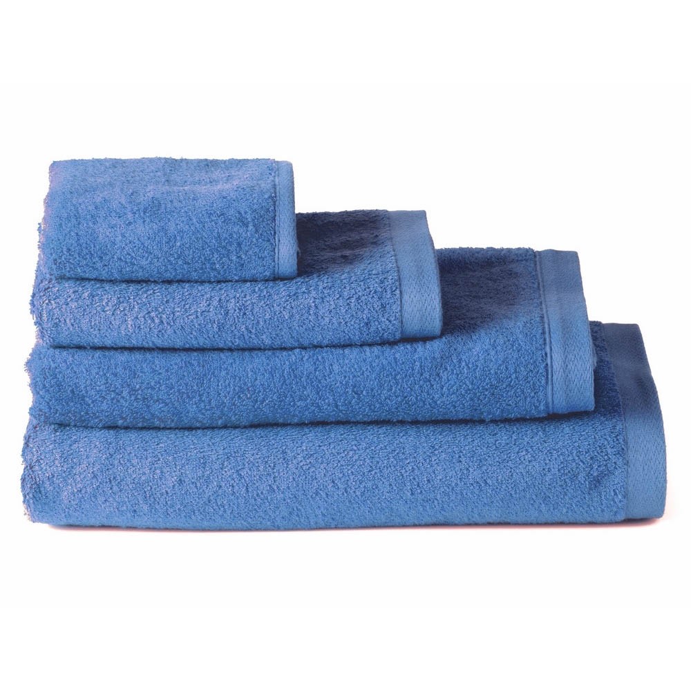 Toalla de rizo americano realizada en algodón 100% de color azul, con gran poder de absorción, altamente resistente y duradera.
