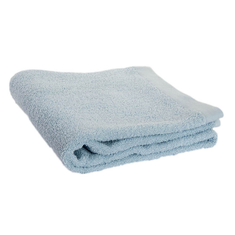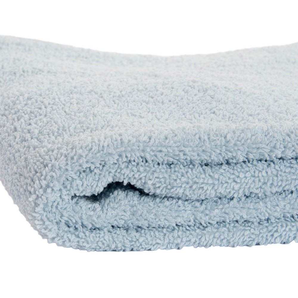 Toalla azul de rizo confeccionada en algodón suave y absorbente.
