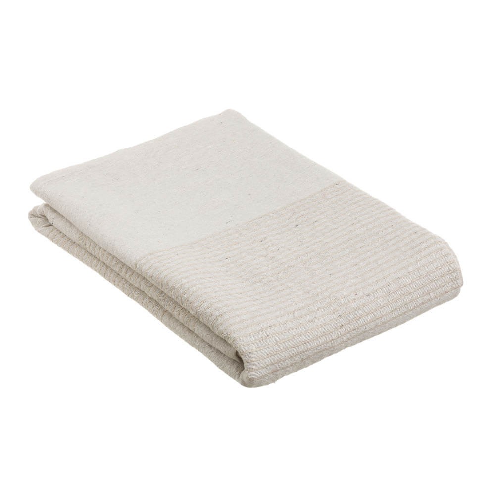 Colcha multiusos confeccionada en tela beige de algodón y poliéster de alta calidad, perfecta cómo cubre sofás o sillón para renovarlo fácilmente o como colcha para colocarla sobre la cama, para el coche, la playa... tiene infinidad de usos.